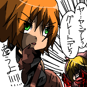 まああながち間違ってないと思いますがね!!(れっつ開き直り ヤンデレ=病んだ愛情表現をする人 らしいので・・・あれ俺病んだ愛情表現してんのかよ確かに性格重いけど← 別の友達にはツンデレ?と呼ばれたりもう意味わからん。 どっちでもいいやもう・・・!!!知らんがな!! |